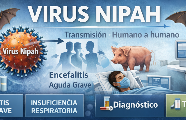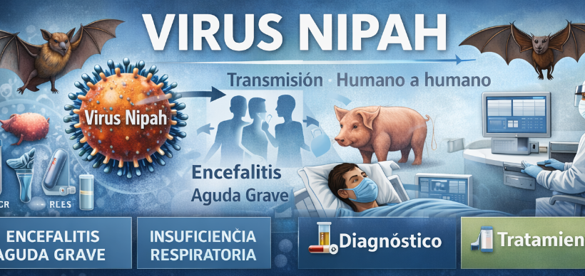 El virus Nipah es un patógeno zoonótico emergente de alta letalidad que representa una amenaza relevante para la salud pública global. Transmitido principalmente desde animales al ser humano —y con capacidad de contagio interhumano—, se asocia a cuadros graves de encefalitis aguda e insuficiencia respiratoria, con una mortalidad elevada. Aunque los brotes se concentran en…