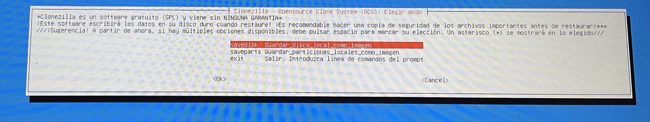 | REALIZAR UNA COPIA DEL DISCO DURO / PARTICIÓN CON CLONEZILLA |